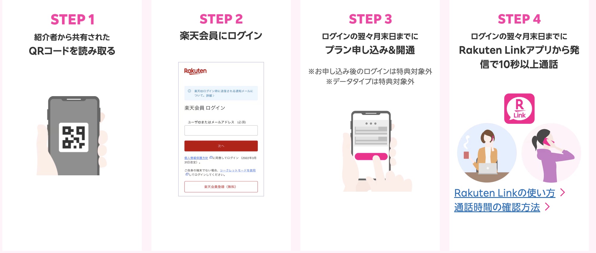 ここが一番大事です! 開通したらすぐに「Rakuten Link」アプリをインストールしてログインしてください。これで国内通話が無料になります。また、キャンペーンのポイントをもらうための条件(10秒以上の通話など)も忘れずにクリアしましょう。