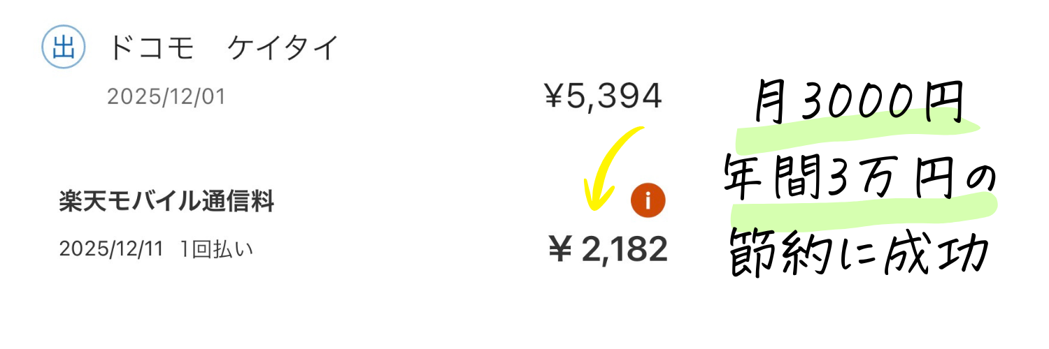みやねこ僕も最近Docomo→楽天に乗り換えた結果、年間3万円の節約に成功!
