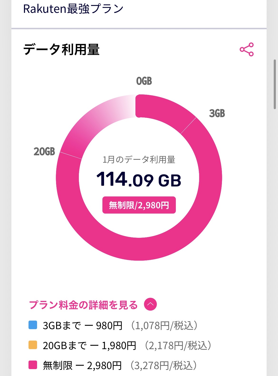料金プランは、相変わらずシンプルな「Rakuten最強プラン」ひとつだけ。