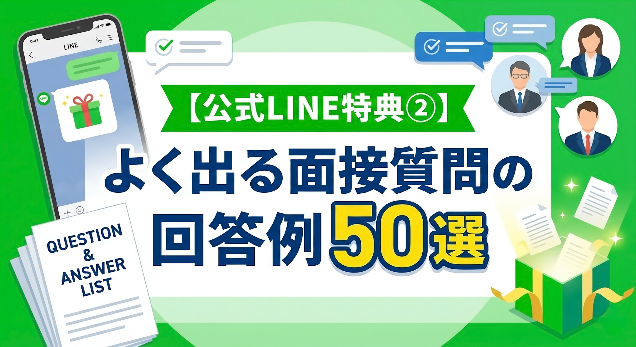 【公式LINE特典②】よく出る面接質問の回答例50選